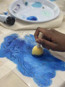 ضمن معسكر بنفسج الصيفي قدم مركز فتيات الخور  ورشة عملية بعنوان الطباعة على الأقمشة، حيث تعرّفت المشاركات على تقنيات وأساليب الطباعة اليدوية، واكتسبن مهارات فنية في تحويل الأقمشة إلى قطع إبداعية تحمل لمسات شخصية وزخارف مبتكرة. الورشة جاءت ضمن أنشطة المعسكر التي تهدف إلى تنمية المهارات اليدوية، تعزيز الإبداع، وإبراز الحس الفني لدى الفتيات.